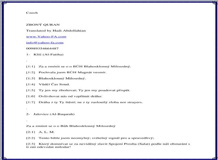 To Download All Czech Quran Translation in Text (PDF) click here