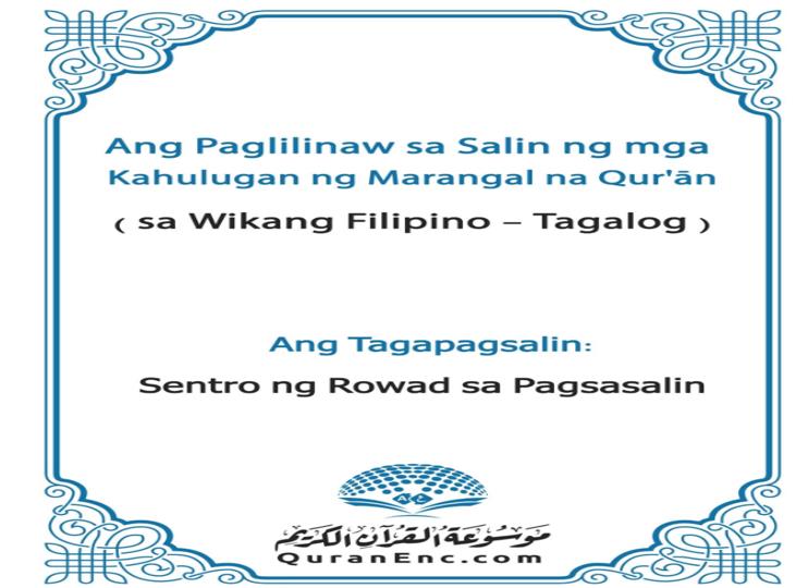 Ang aming pagsasalin ng format ng PDF ay nagbibigay ng isang digital na bersyon ng Holy Quran na may mga kahulugan na tumpak na isinalin sa Pilipino. Ang mga naa -access na file na ito ay karaniwang kasama: